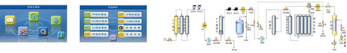 ■ 全自動微電腦控制系統,多級菜單式操作,控制器采用32位微功耗處理器作為控制核心,具備超高運算率、低功耗的特點,集成水處理所需的模擬量傳感器接入、開關信號輸入、控制輸出以及水質電導率、電阻率、水流量、水壓和水箱液位的在線監測。